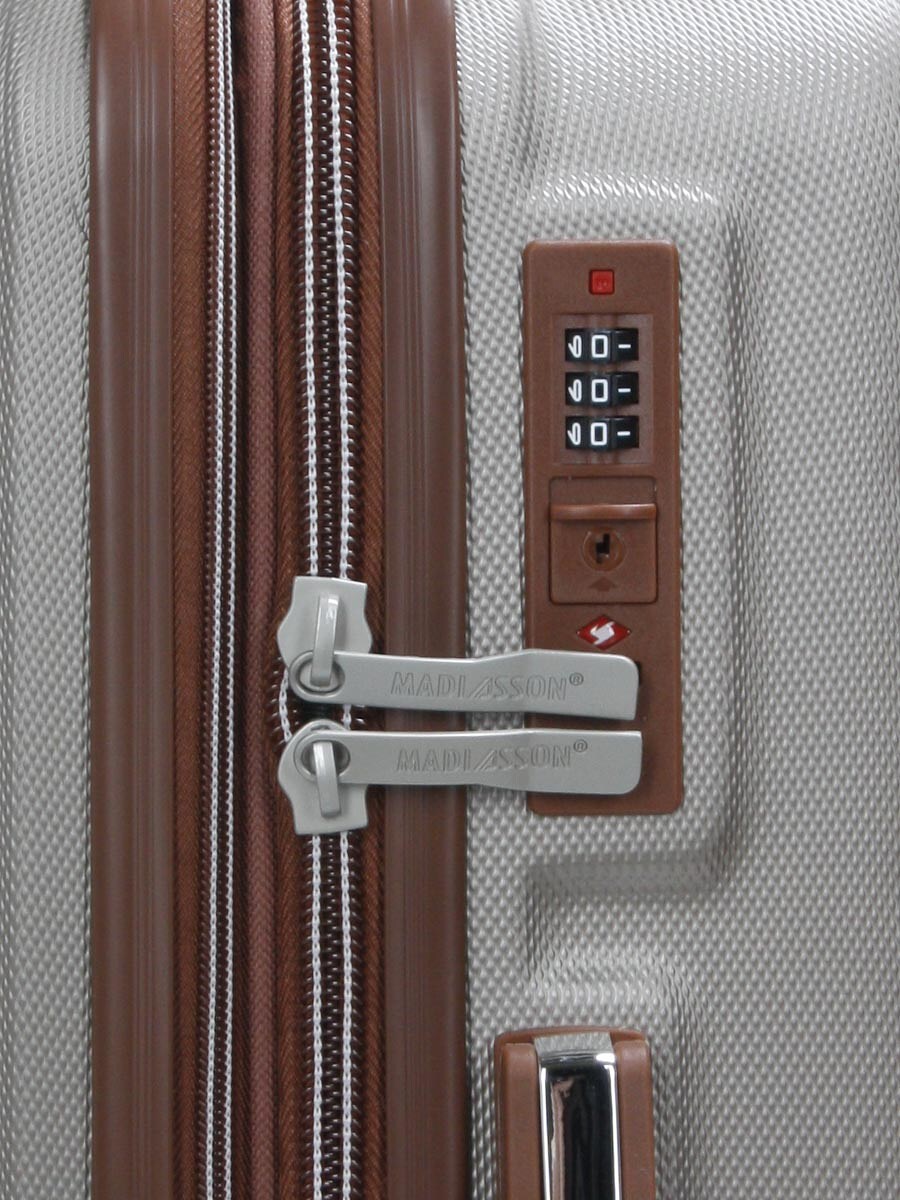 Перевозить расширяемый чемодан Madisson Bendigo очень просто. Он легко катится рядом или позади владельца благодаря 4 поворотным колёсам на 360° и выдвижной телескопической ручке с двойными направляющими. Мягкие верхняя и боковая ручки позволяют быстро поднять его при необходимости — например, чтобы перенести через ступеньки или достать из багажника автомобиля. Боковые защитные накладки уменьшают риск повреждений, а молнию можно зафиксировать с помощью кодового замка TSA.