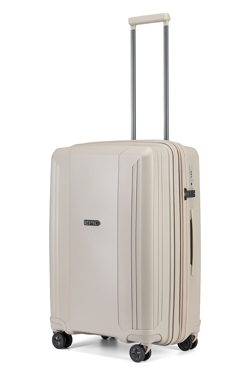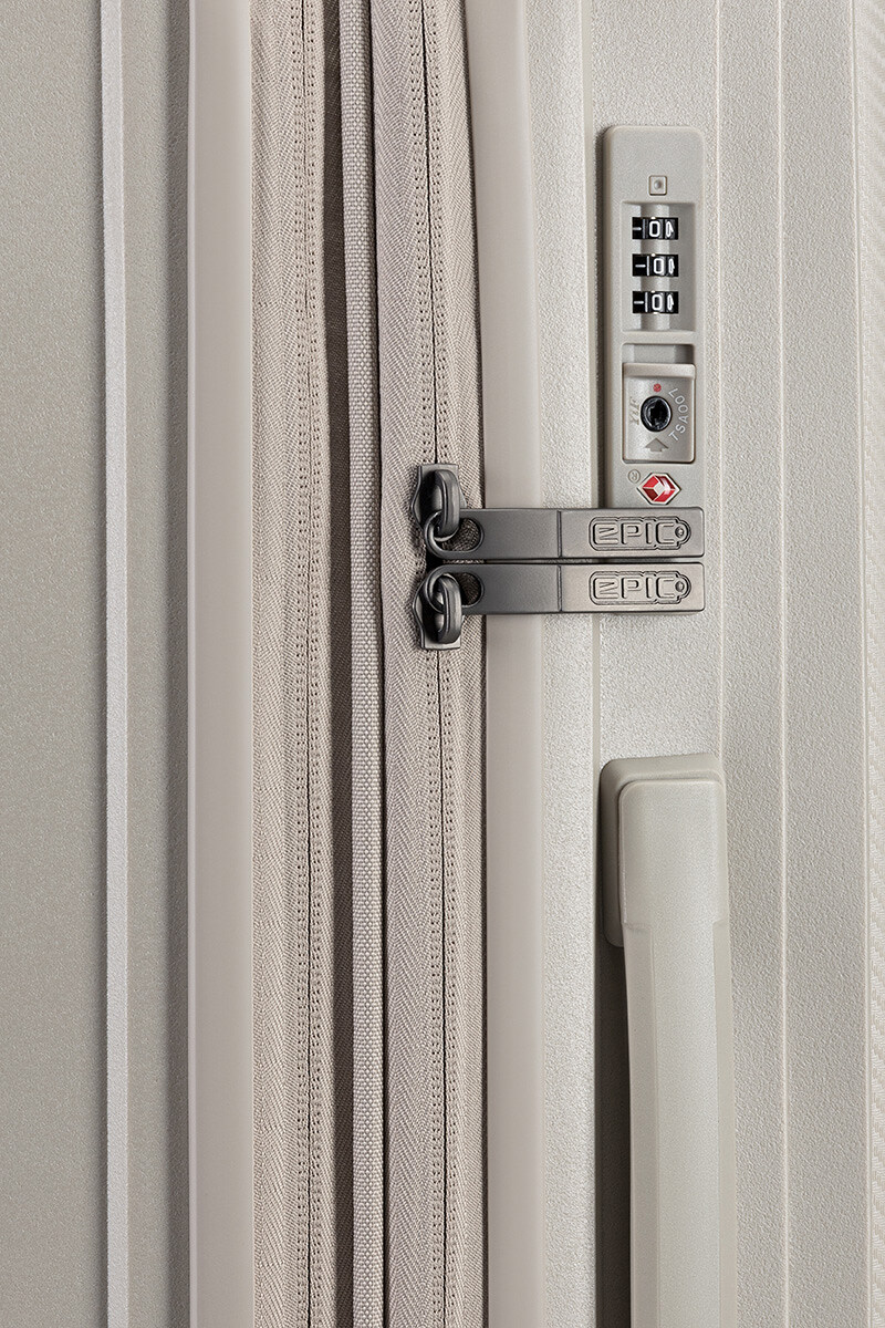 Чемодан оснащен четырьмя двойными колесами с улучшенной маневренностью, также колеса выполнены из мягкой, но прочной и тихой смеси, которые поддерживаются двойными герметичными картриджными подшипниками для дополнительной плавности и более длительного срока службы. Дополнительно, колеса имеют EPIC Standard™ – система легкосменных колес. Еще из особенностей данной модели - это молния, высокая водонепроницаемость благодаря своей прорезиненной поверхности и отвечающая самым высоким стандартам гибкости и долговечности в эксплуатации. Для удобства перемещения имеются выдвижные телескопические ручки и подъемные ручки на верхней и боковой поверхностях. Также изделие имеет расширение, что позволяет увеличить объем чемодана.