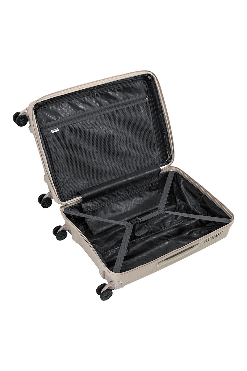 Аксессуар оснащен встроенным кодовым замком с системой TSA. Внутри два отделения оснащены прижимными ремнями, в одном из которых есть сетчатая крышка на молнии.