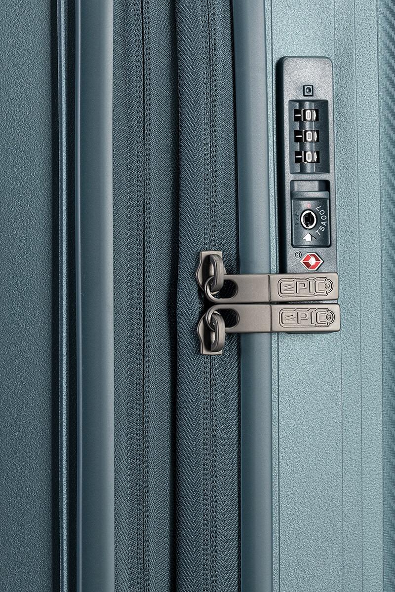 Чемодан оснащен четырьмя двойными колесами с улучшенной маневренностью, также колеса выполнены из мягкой, но прочной и тихой смеси, которые поддерживаются двойными герметичными картриджными подшипниками для дополнительной плавности и более длительного срока службы. Дополнительно, колеса имеют EPIC Standard™ – система легкосменных колес. Еще из особенностей данной модели - это молния, высокая водонепроницаемость благодаря своей прорезиненной поверхности и отвечающая самым высоким стандартам гибкости и долговечности в эксплуатации. Для удобства перемещения имеются выдвижные телескопические ручки и подъемные ручки на верхней и боковой поверхностях. Также изделие имеет расширение, что позволяет увеличить объем чемодана.