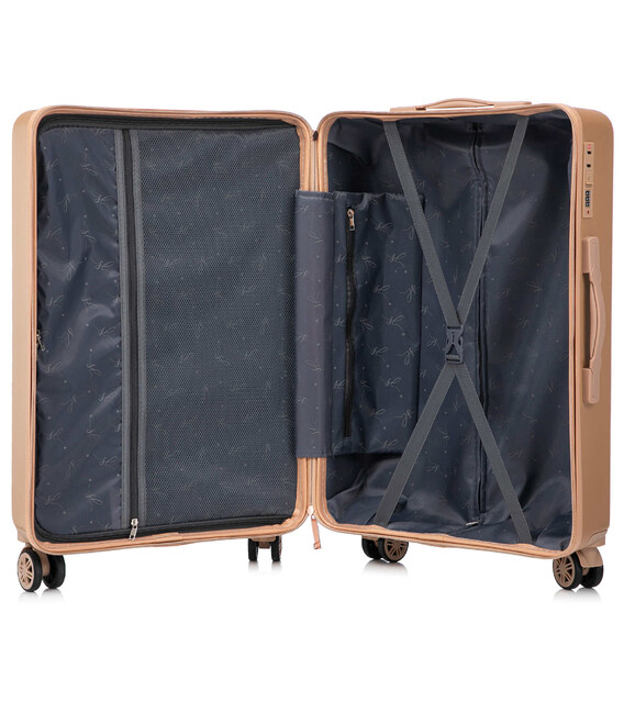 - Чемодан имеет дополнительный внутренний карман для мелких вещей на молнии.