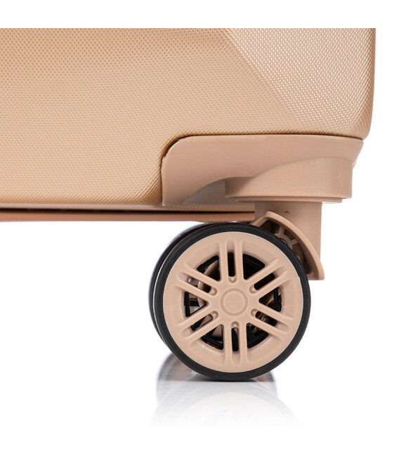 - Полноповоротные колеса - данная модель оснащена четырьмя спаренными колесами, вращающимися на 360°. Облегченные cпаренные колеса обеспечивают лучшее распределение веса и устойчивость чемодана, отличное сцепление, маневренность и большую износостойкость. Колеса крепятся на 4 винта изнутри, что обеспечивает высокую стойкость при ударной нагрузке с любой стороны, и позволяет их заменить при износе.