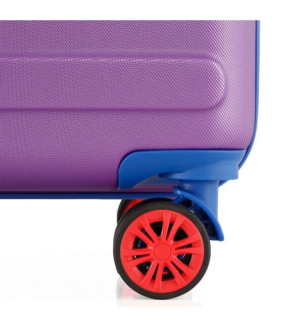 - Полноповоротные колеса - данная модель оснащена четырьмя спаренными колесами, вращающимися на 360°. Спаренные колеса обеспечивают лучшее распределение веса и устойчивость чемодана, отличное сцепление, маневренность и большую износостойкость. Колеса крепятся на 5 винтов изнутри, что обеспечивает максимальную стойкость при ударной нагрузке с любой стороны, и позволяет их заменить при износе.