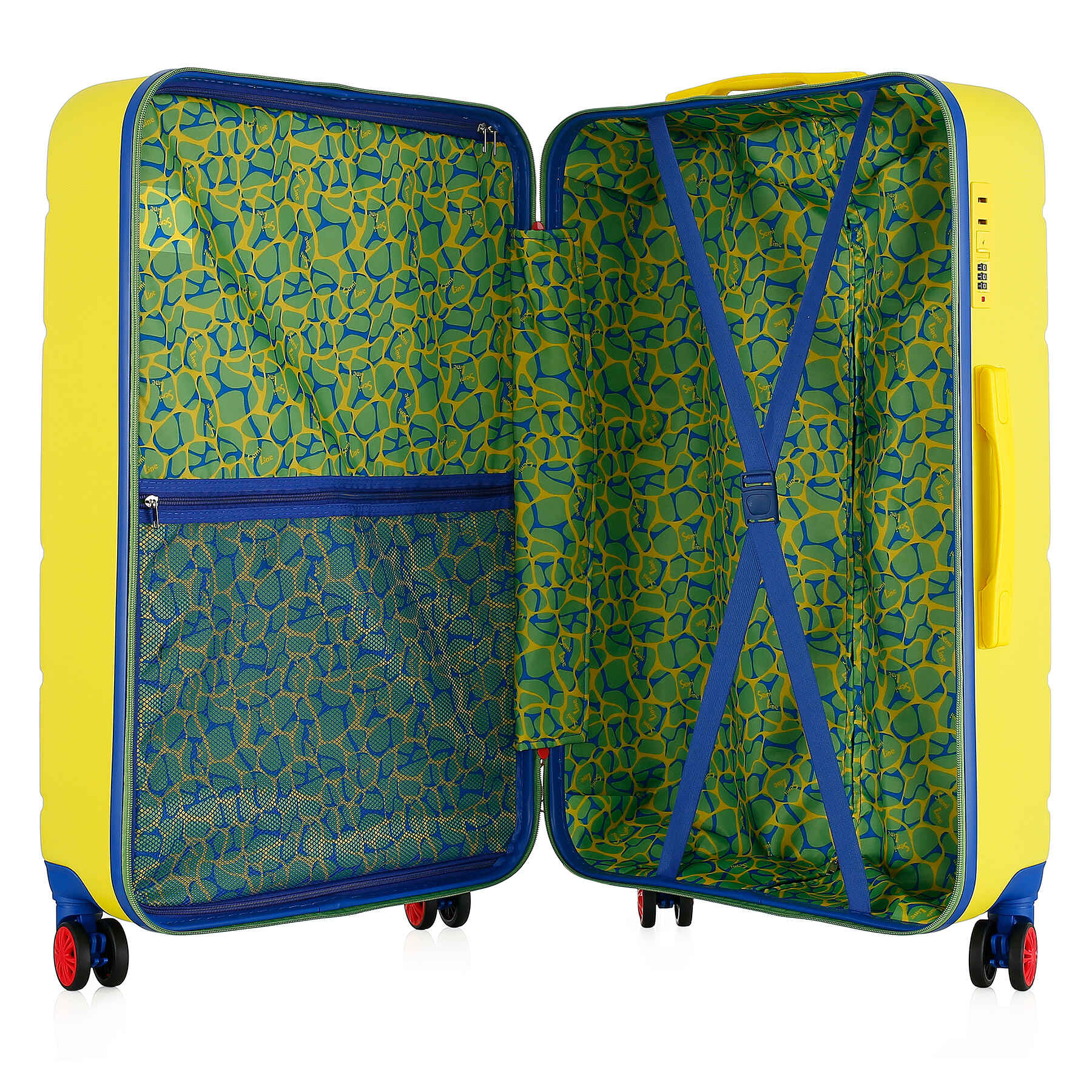 Однако не только цветовой дизайн, но и ряд конструктивных решений делает этот чемодан привлекательным и функциональным. Чемодан оснащен "утопленным" кодовым замком, не выступающим над поверхностью чемодана, оснащен спаренными полноповоротными колесами, и является одним из самых легких среди своего типоразмера. Внутреннее пространство разделено текстильной перегородкой на молнии на две части, а для мелких вещей предусмотрен отдельный карман на перегородке.