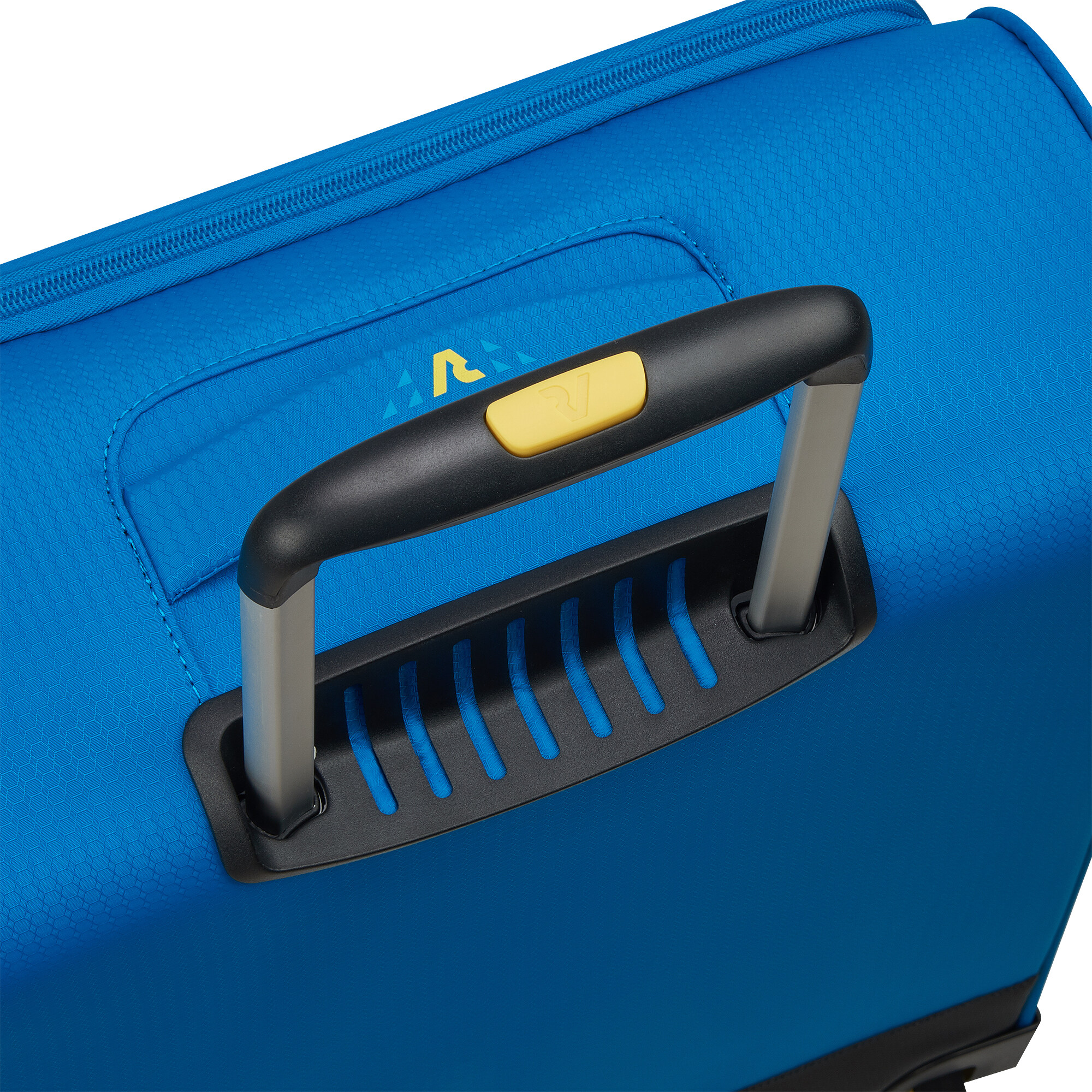 Маленький чемодан подходит для путешествий на недолгое время. Выполнено из полиэстера плотностью 150D, что позволяет чемодану быть износостойким и водоотталкивающим. Оснащен вместительным основным отделением с прижимными ремнями, а также двумя наружными, небольшими карманами. Для удобства перемещения чемодан оснащен двумя одинарными колесами для большей практичности, регулируемой телескопической ручкой и мягкой ручкой для переноски на верхней части чемодана. Основным преимуществом чемоданов серии Lite Soft является их вес – всего 1,6 кг.