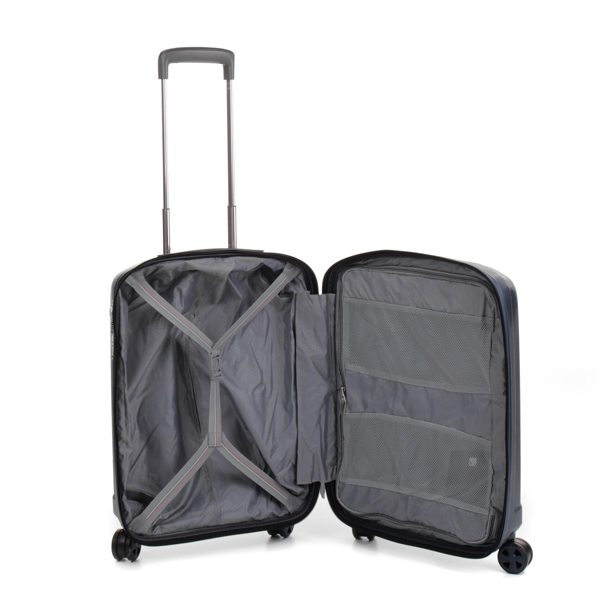 Коллекция чемоданов Unica является одной из самых высокопроизводительных в линейке Roncato - результат тщательного исследования передовых технологий, направленных на получение сверхлегких чемоданов. Серия изготовлена из прочного поликарбоната, с выдвижной телескопической ручкой, четырьмя колесами, вращающимися на 360 градусов, адресной табличкой и защищенной молнией. Внутри чемодана есть прижимные ремни для багажа, текстильная крышка на молнии.