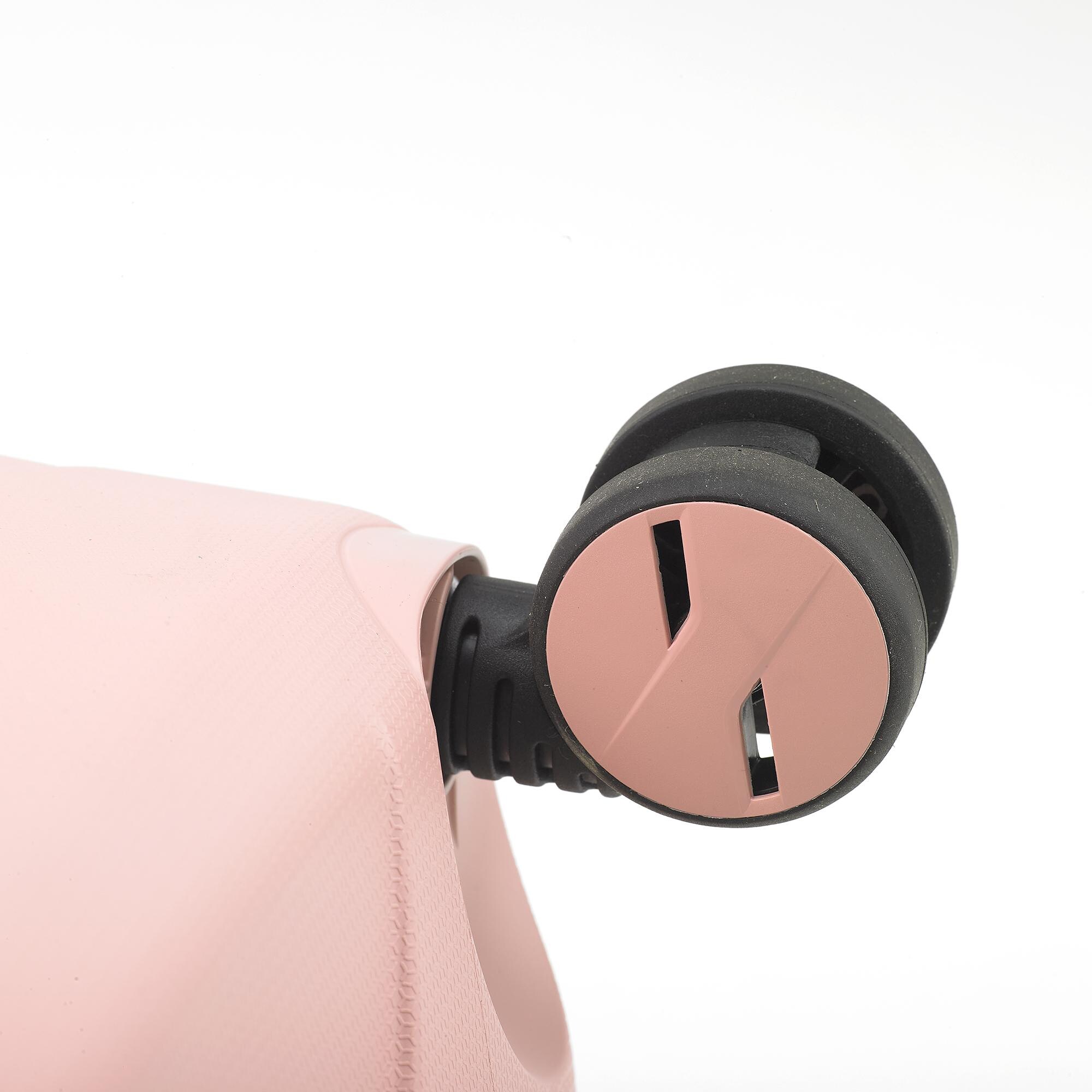 Маленький чемодан подходит для путешествий на не продолжительное время, ручная кладь. Выполнен из 100% полипропилена, материал, который обладает гибкостью, необыкновенной ударопрочностью и стойкостью к деформациям и выгоранию. Для удобства перемещения чемодан оснащен четырьмя спаренными колесами, вращающимися на 360 градусов, регулируемой телескопической ручкой и ручкой для переноски на верхней части чемодана.