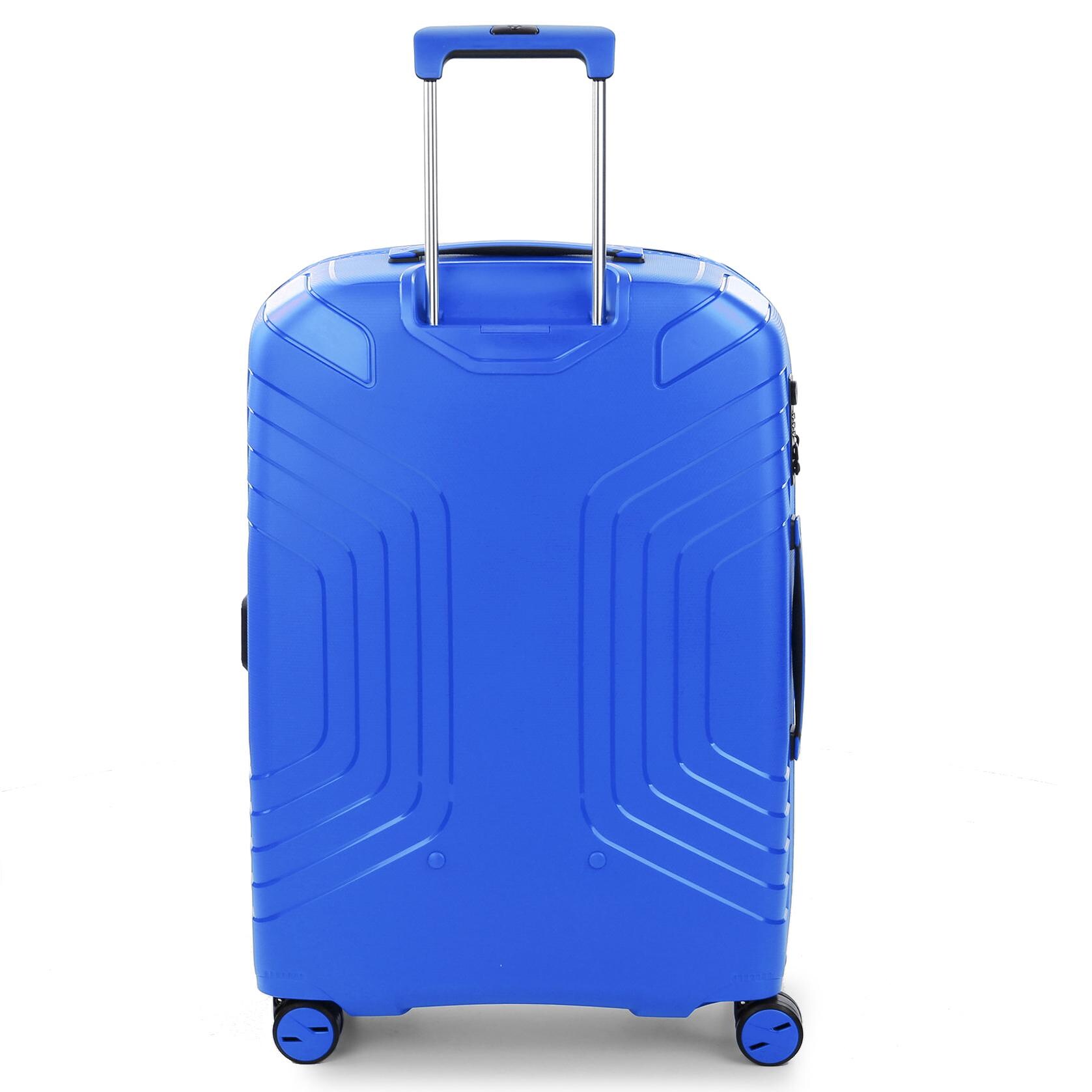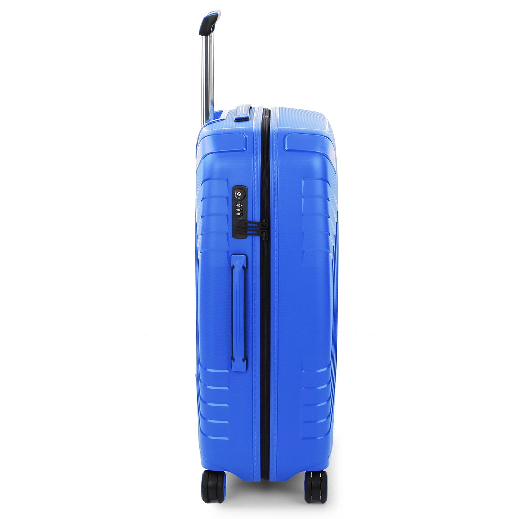 Средний чемодан подходит для путешествий на длительное время. Выполнен из 100% полипропилена, материал, который обладает гибкостью, необыкновенной ударопрочностью и стойкостью к деформациям и выгоранию. Для удобства перемещения чемодан оснащен четырьмя спаренными колесами, вращающимися на 360 градусов, регулируемой телескопической ручкой и ручкой для переноски на верхней и боковой части чемодана.