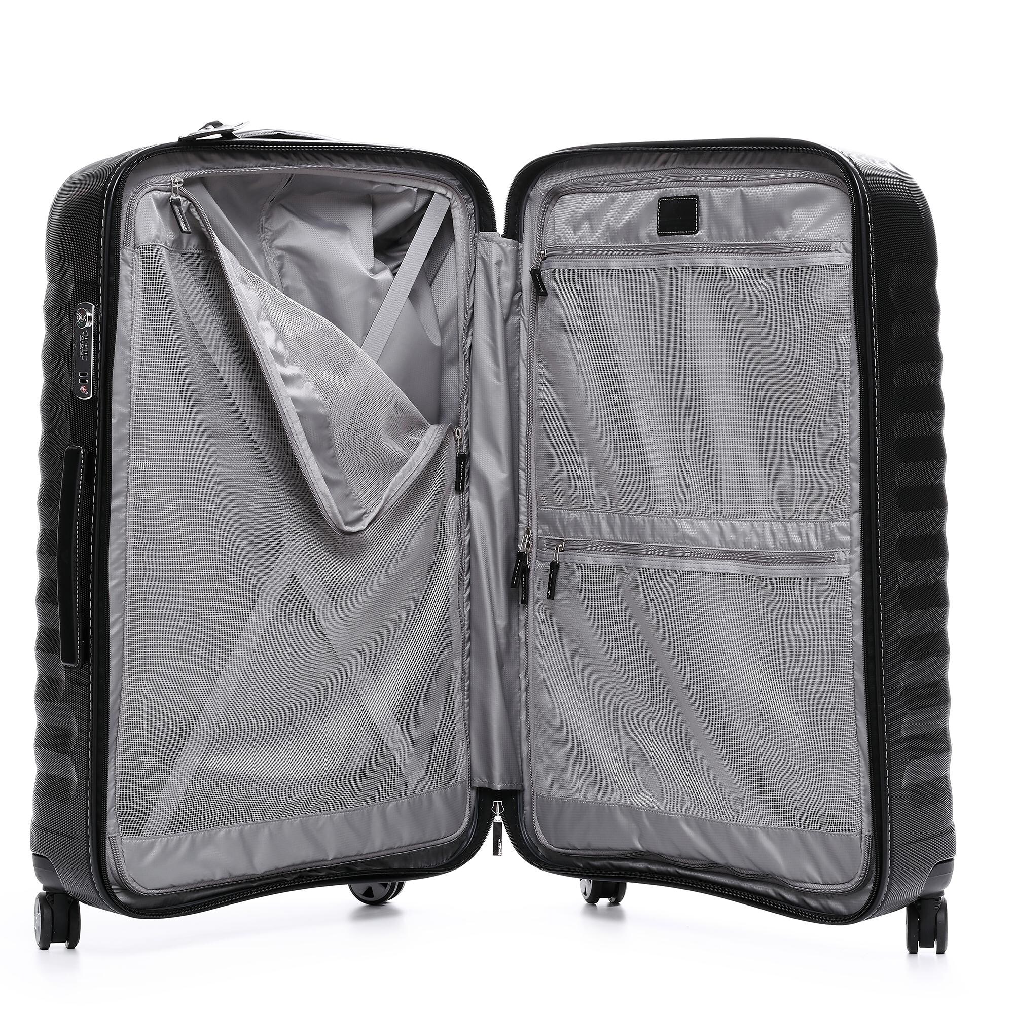 Большой чемодан выполнен из 100% поликарбоната с алмазным покрытием, что служит полной защитой от