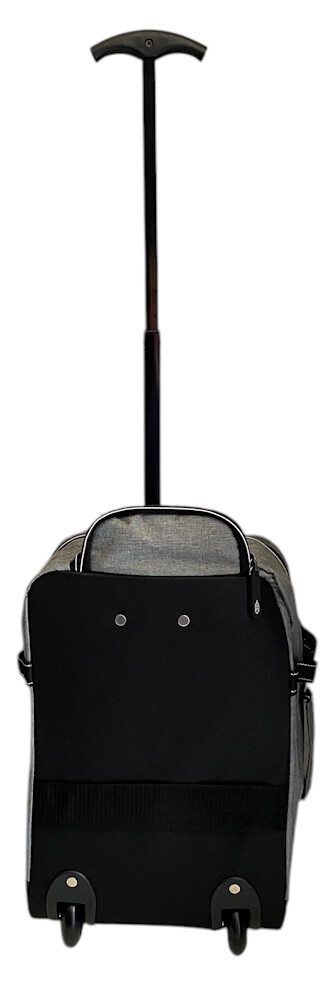 Чемодан оснащён двумя колесами для плавного и устойчивого передвижения, а также выдвижной телескопической Т-образной ручкой, обеспечивающей удобство управления. На передней панели расположены функциональные карманы на молнии — идеальное место для документов, аксессуаров и мелочей, которые должны быть под рукой.