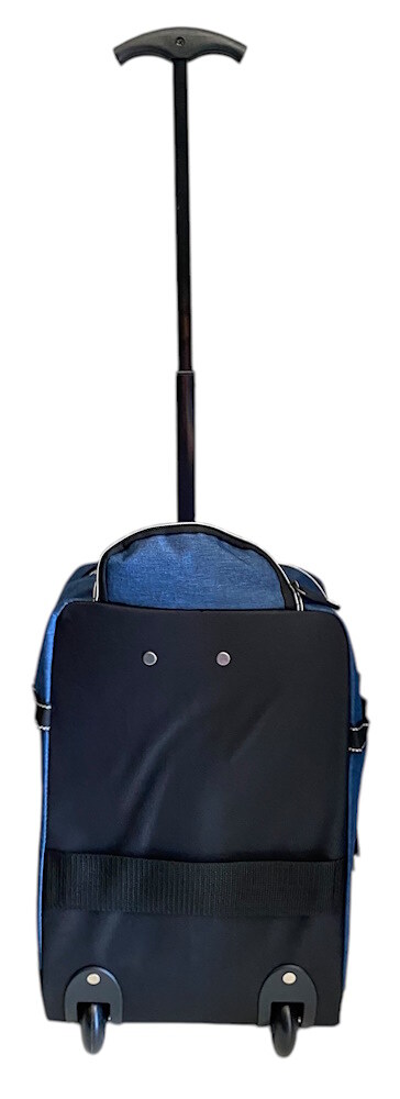 Чемодан оснащён двумя колесами для плавного и устойчивого передвижения, а также выдвижной телескопической Т-образной ручкой, обеспечивающей удобство управления. На передней панели расположены функциональные карманы на молнии — идеальное место для документов, аксессуаров и мелочей, которые должны быть под рукой.