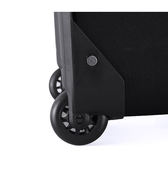 - Скрытые колеса большого диаметра - данная модель оборудована двумя колесами, которые с обеих сторон защищены пластиковыми бортами. Полиуретановые колеса имеют достаточно большой диаметр, что обеспечивает более плавное качение даже по неровным поверхностям. Чемоданы с парой скрытых колес более защищены от поломок вследствие ударов и падений.