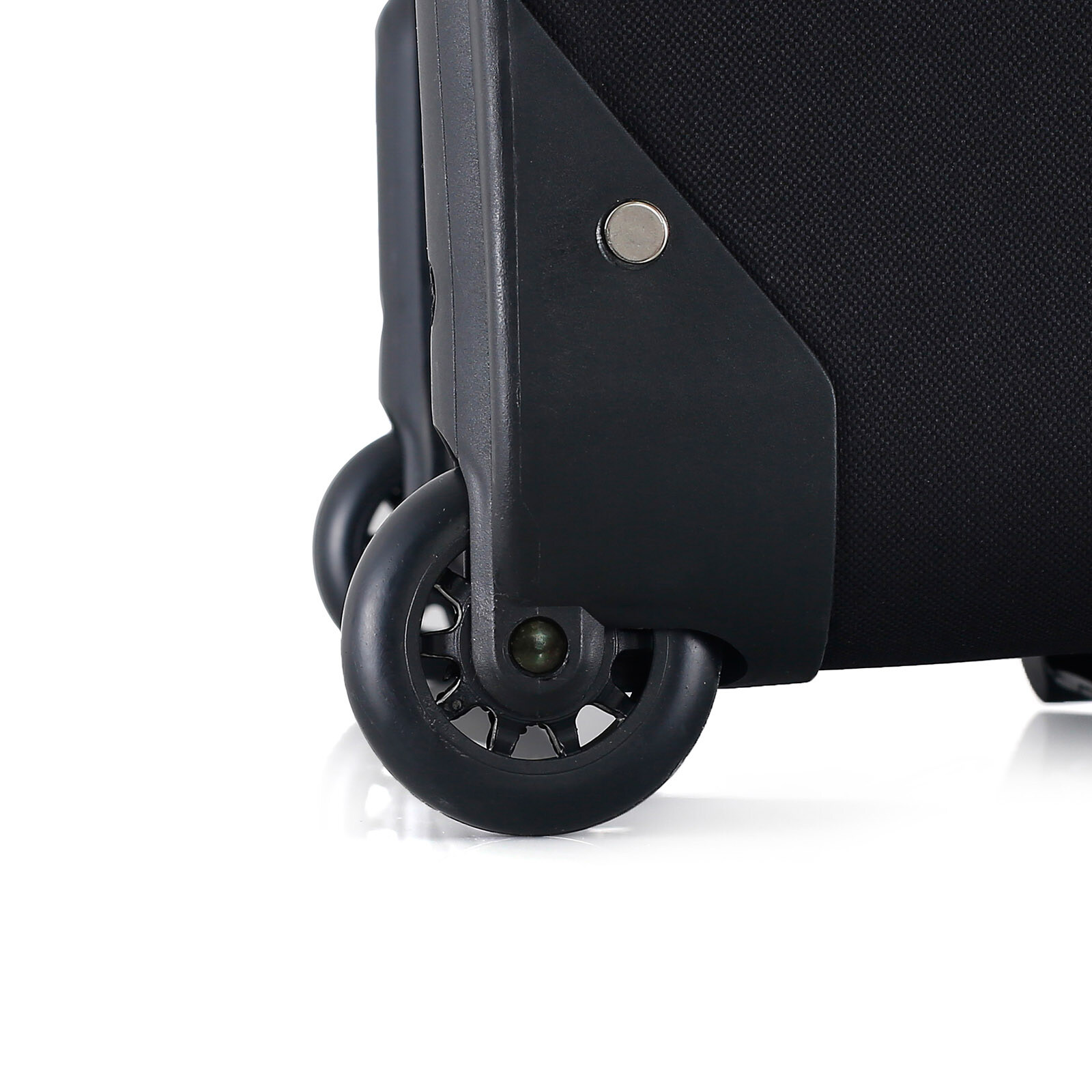 Чемоданы Semi Line T5679 оснащены прочными двойными колесами, встроенными в специальные ниши, которые обеспечивают плавное передвижение даже при значительной нагрузке. По узкой стороне чемодан оснащен сплошной пластиковой вставкой, что способствует большей жесткости и позволяет держать форму. Ткань имеет внутреннее водозащитное покрытие, поэтому вещи останутся сухими даже под дождем.