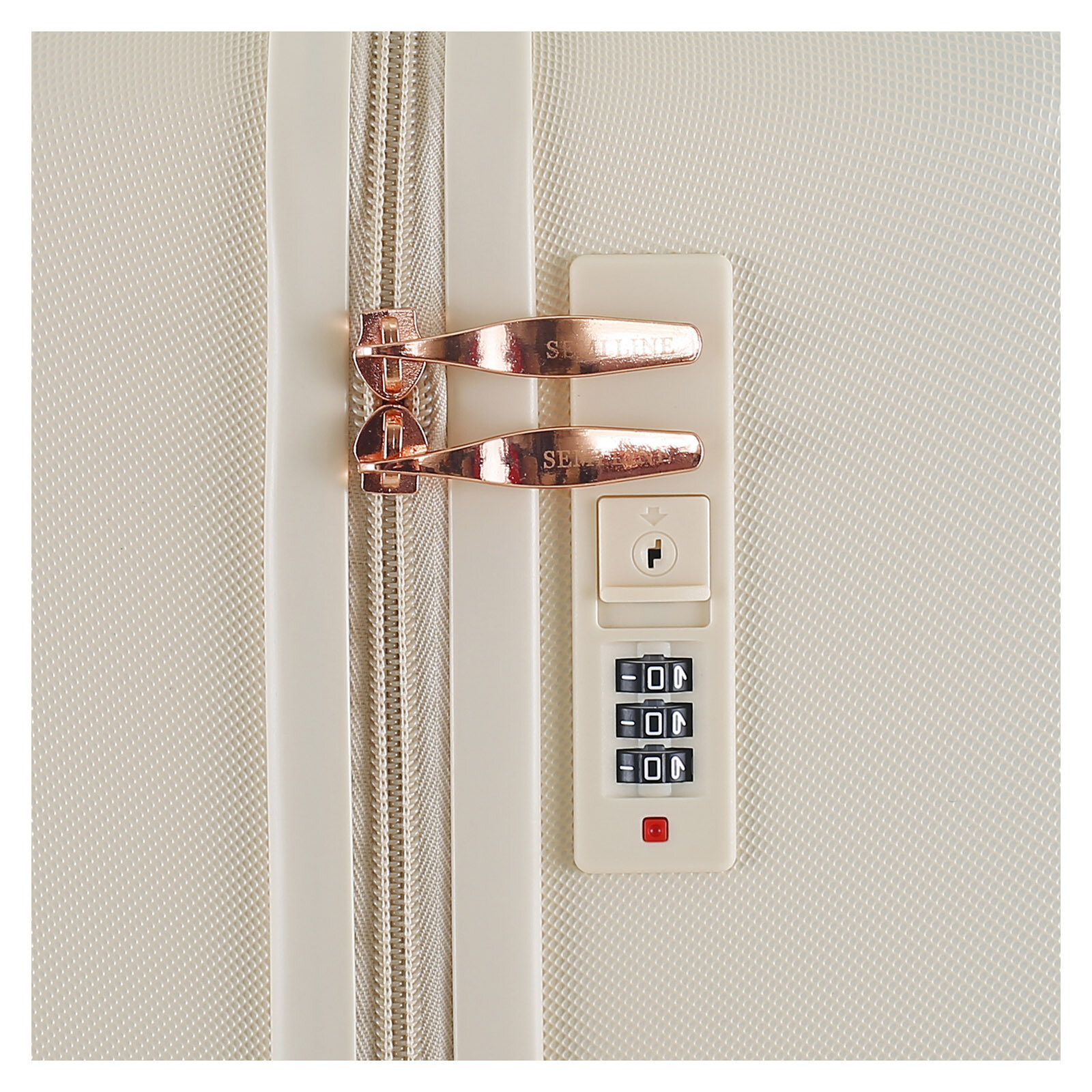 Главным преимуществом чемодана Semi Line 20" (S) Ecru (T5757-2) являются большие сдвоенные колеса, поворачивающиеся на 360° и обеспечивающие исключительную маневренность и устойчивость, а также утопленный кодовый замок, который защищает вещи и не выступает над корпусом, сохраняя его целостность и стильный вид. Дополнительный комфорт при транспортировке обеспечивает верхняя ручка с мягкой гелевой накладкой.
