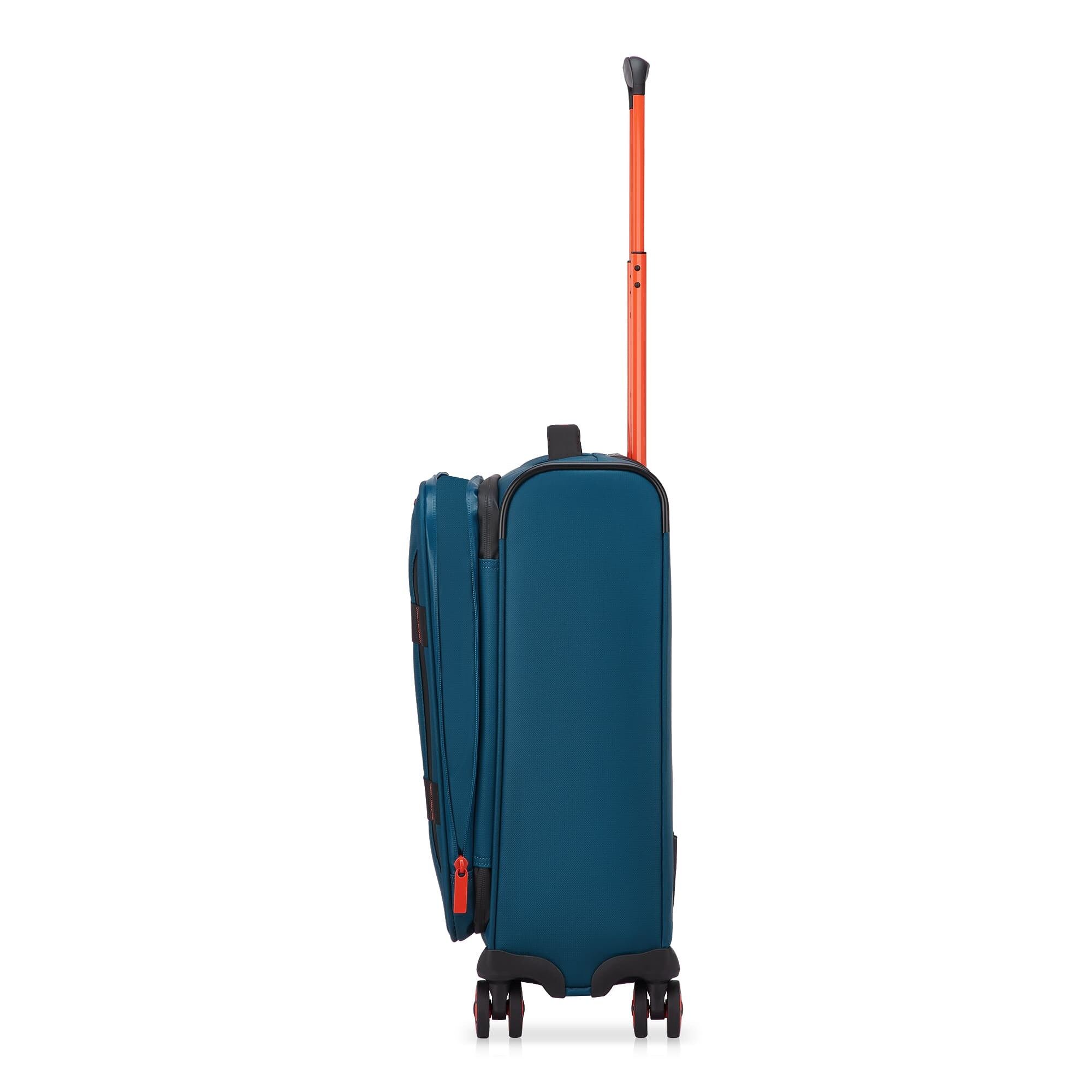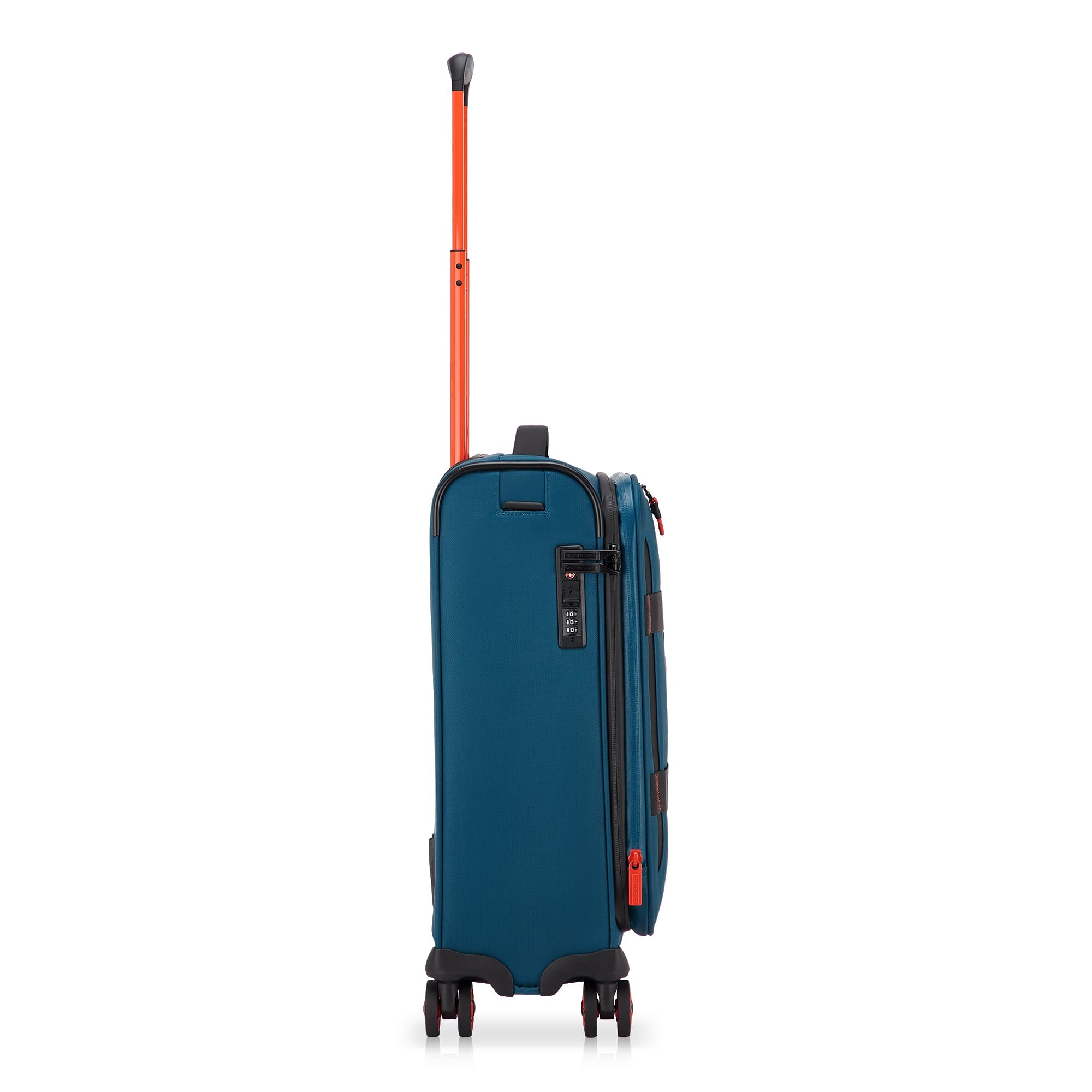 Изделия коллекции изготовлены из волнистого полиэстера 900D с PU-покоем, которое защищает от дождя, брызг, влаги и быстро сохнет. Обработанная поверхность гарантирует высокую стойкость к истиранию и износу, а также превосходную устойчивость к сцеплению и разрывам, даже при интенсивном использовании. Каждая тележка оснащена водонепроницаемой молнией и кодовым замком TSA-системой, что обеспечивает максимальную безопасность ваших личных вещей, содержащихся внутри багажа. Двойные колеса, вращающиеся на 360°, нижняя часть чемодана усилена текстурированным стойким к царапинам резиновым материалом.