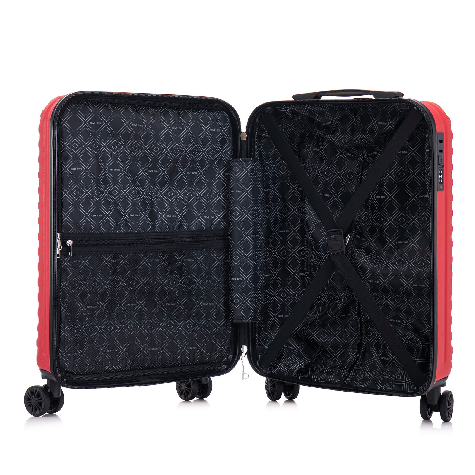 Благодаря дизайну с пересечением полос, кажется, что корпус Semi Line T5871-2 будто окутан в ткань, чемодан выглядит максимально презентабельно и имеет в своем арсенале ряд конструктивных решений, делающих его не только привлекательным, но и функциональным. Чемодан оснащен "утопленным" кодовым замком, не выступающим над поверхностью чемодана, оснащен спаренными полноповоротными колесами, и является одним из самых легких среди своего типоразмера. Внутреннее пространство разделено текстильной перегородкой на молнии на две части, а для мелких вещей предусмотрен отдельный карман на перегородке.