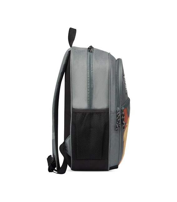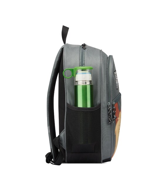 Вместительный детский рюкзак оснащен большим основным отделом и двумя дополнительными наружными на молнии. Для удобства перемещения предусмотрена подъемная ручка на верхней панели. Имеет мягкую спинку и плечевые ремни, также на плечевых ремнях присутствуют светоотражающие элементы. Дополнительно предусмотрены боковые карманы для бутылки или зонтики.
