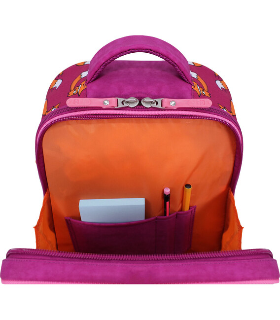У цій моделі — два великих відсіки, тож розмір і місткість дають змогу брати з собою все необхідне для школи чи навіть короткої мандрівки. Основне відділення підходить для підручників, зошитів і канцелярського приладдя, а також туди поміститься спортивна форма та ланчбокс із перекусом. Другий відсік менший за обʼємом, проте також місткий — тут є додаткова кишеня-органайзер для канцтоварів.