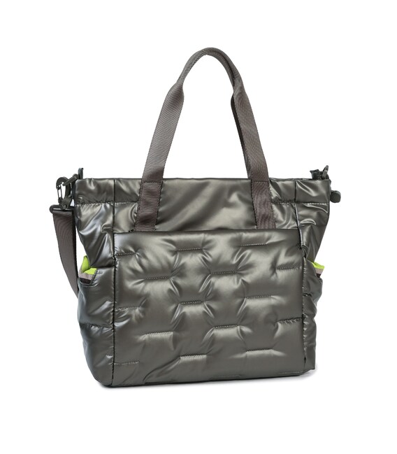 Вместительная, дутая сумка на плечо, освобождает руки и дает возможность воспользоваться необходимыми вещами в дороге или каждый день. Сумка на плечо с дополнительным съемным ремнем, актуальная модель для активных женщин. Оснащена основным отделением, внутренним карманом, съемной косметичкой и двумя дополнительными карманами с передней и задней стороны сумки, также есть боковые карманы для зонтика или бутылки. Выполнена из плотного 100% polyester.