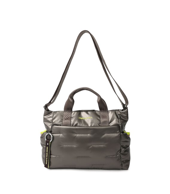 Вместительная, дутая hand bag, освобождает руки и дает возможность воспользоваться необходимыми вещами в дороге или каждый день. Сумка оснащена дополнительным съемным ремнем, актуальная модель для активных женщин. Также, оснащена основным отделением, внутренним карманом, съемной косметичкой и двумя дополнительными карманами с передней и задней стороны сумки, также есть боковые карманы для зонтика или бутылки. Выполнена из плотного 100% polyester.