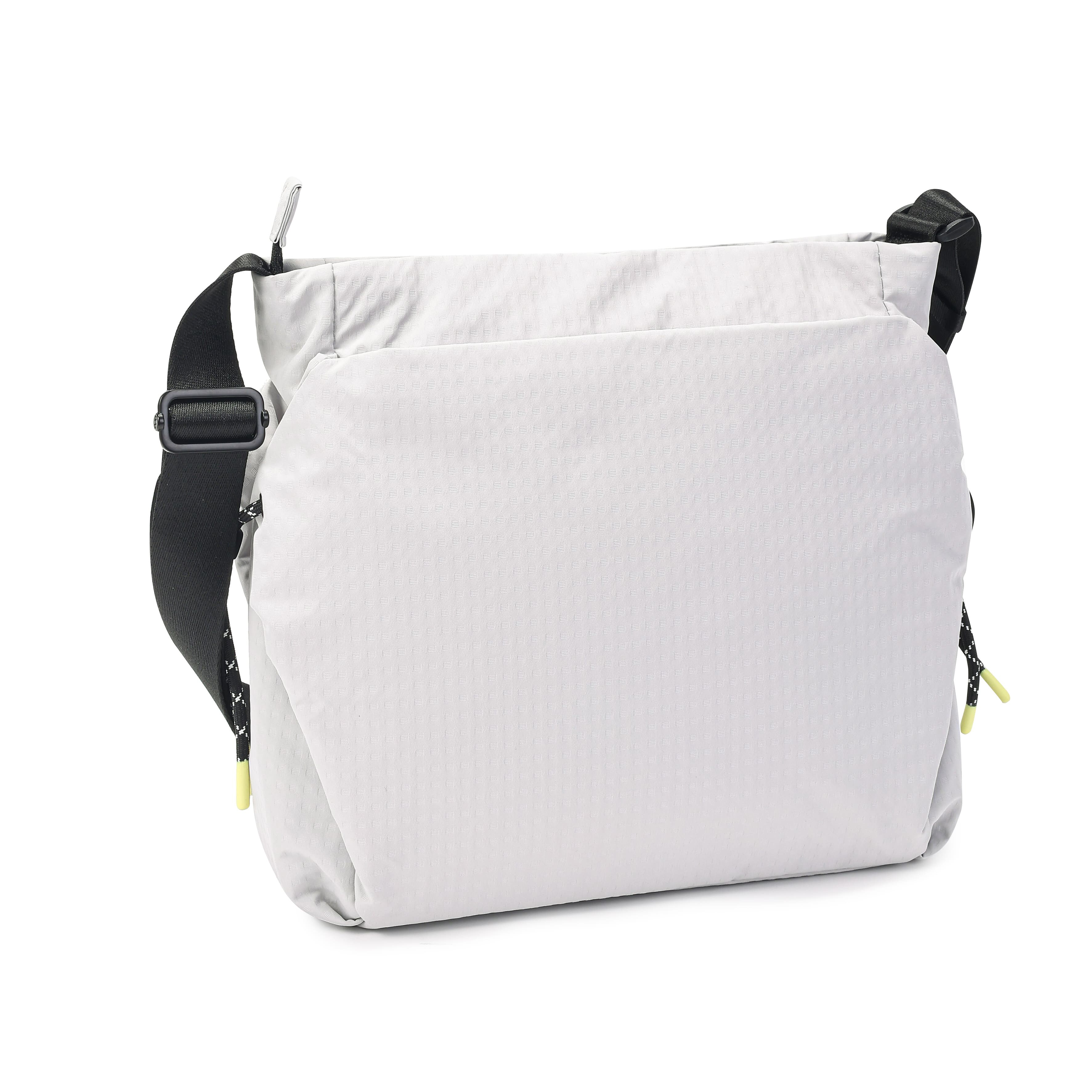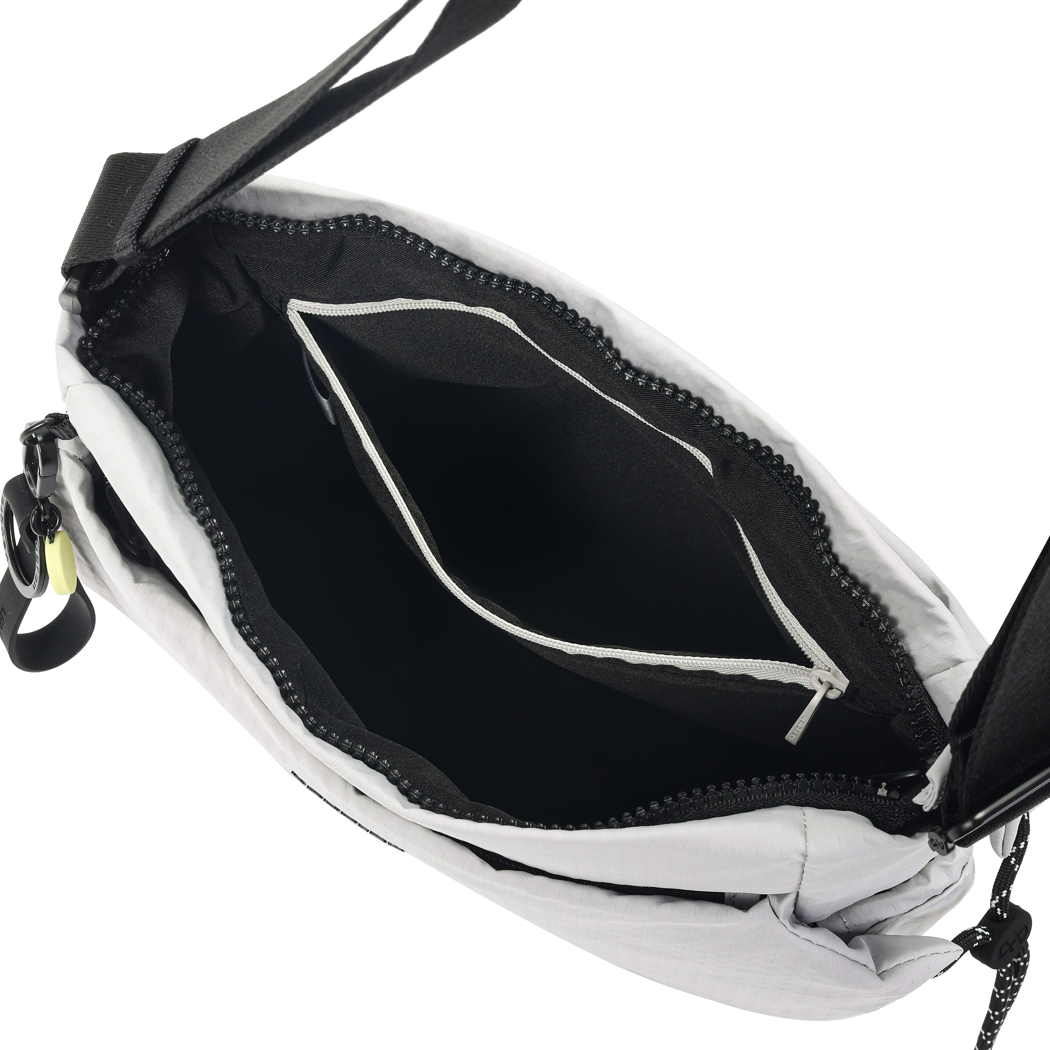Удобная сумка-кроссовер. изготовлена из переработанной ткани. Оснащена основным отделением на молнии с отделом для смартфона и дополнительным карманом на молнии. Снаружи оснащена карманами по бокам, для предметов первой необходимости. На заднем кармане изделия предусмотрена утопленная молния, плотно прилегающая к телу, как дополнительное средство безопасности. Также, при необходимости сумка расширяется и имеет боковые карманы для бутылки/зонтики. Сумку можно носить благодаря регулируемому удлинению ремня.