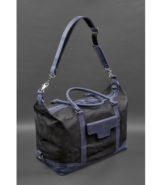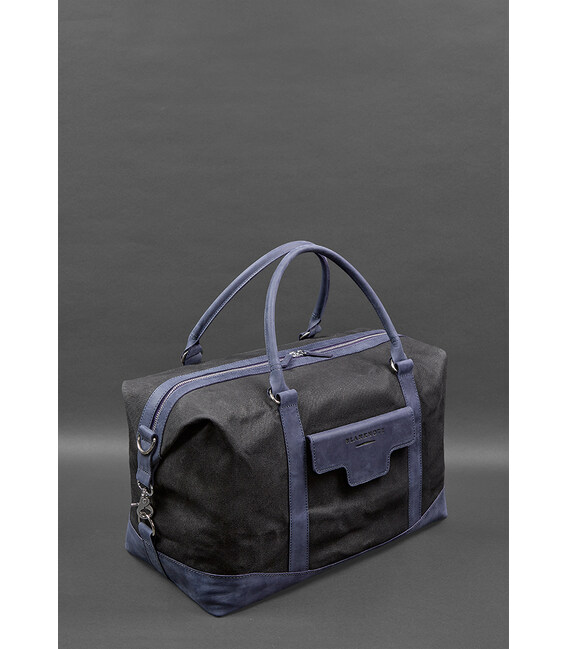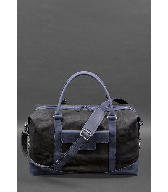 Дорожная сумка из канваса и натуральной темно-синей кожи Crazy Horse