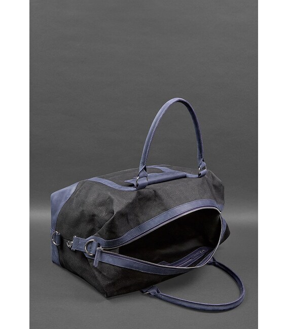 Описание Дорожная сумка из канваса и натуральной темно-синей кожи Crazy Horse