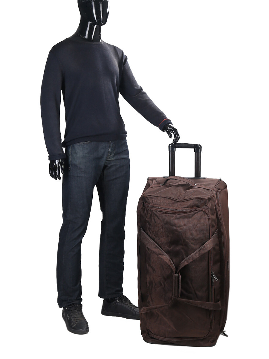 Дорожная сумка Snowball Hamilton имеет 2 колеса и регулируемую тележку для удобства транспортировки. Его можно переносить вручную, используя две большие ручки, усиленные удерживающей петлей. Высокая ручка из пеноматериала обеспечивает быстрый захват, когда вам нужно поднять ее, чтобы подняться на несколько ступенек. Его можно разгрузить, прикрепив его к телескопической ручке вашего большого багажа с помощью петли для тележки. Его дно усеяно защитными усилениями, которые предотвращают износ покрытия. Ползунки молний можно закрыть навесным замком (не входит в комплект).