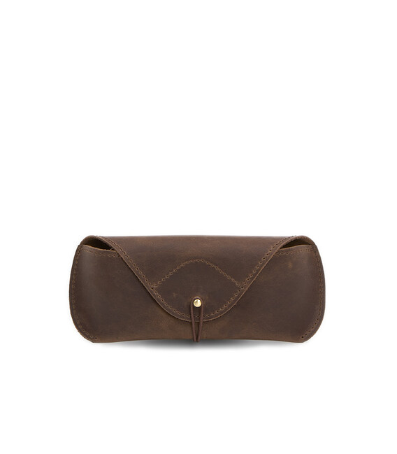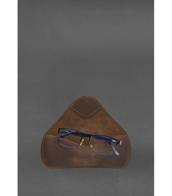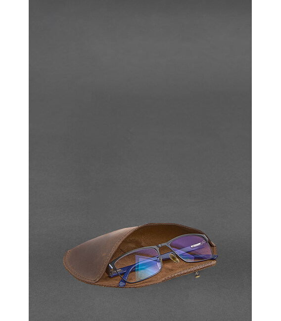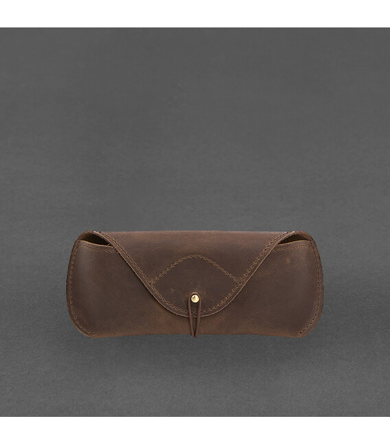 Кожаный чехол для очков с клапаном на резинке Темно-коричневый Crazy Horse