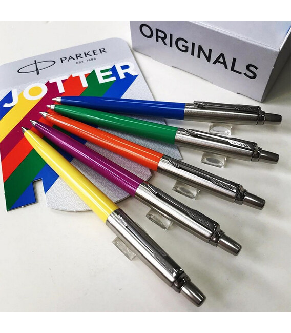Parker JOTTER Originals Orange CT BP (оранжевый; упаковка - блистер) - шариковая ручка из линейки культовых пишущих инструментов JOTTER Original. Лучшая ручка, чтобы начать свое знакомство с известным во всем мире брендом Parker. Доступная цена и неизменное качество, поэтому подойдет даже школьникам, студентам и всем, кто много пишет.Модель выполнена в компактном и достаточно легком дизайне для комфортного ежедневного письма. Нижняя пластиковая часть корпуса дополнена металлическим хромированным кончиком, чтобы защитить ручку от повреждения. Теперь ручка изготавливается на 55% из переработанных материалов, чтобы очередной раз привлечь внимание к теме рационального использования ресурсов и экологии.Ручка использует стержень QuinkFlow для плавного потока чернил и равномерно насыщенных линий. Ручка пишет мягко, чернила не размазываются. Запаса чернил хватает примерно для линии 3,5 км, поэтому ручка идеально подходит для частого и активного письма.Корпус - оранжевый глянцевый пластик и полированная нержавеющая сталь.Серебристая отделка клипа и наконечника - хромирование.Удобный нажимной механизм с кнопкой.В ручку вставлен стартовый шариковый стержень (средний размер линии; чернила синего цвета).Ручка упакована в брендированный экоблистер.Оригинальные ручки Parker в разнообразном ассортименте отделок. На А ttribute.ua представлены все коллекции пишущих инструментов Parker. Быстрая доставка и выгодные цены на подлинную брендовую продукцию.