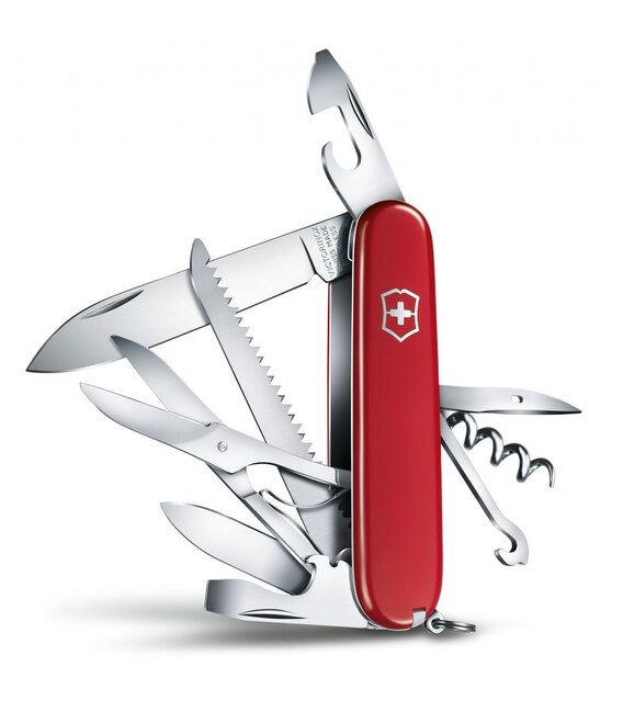 Швейцарский карманный нож Victorinox HUNTSMAN 1.3713 с классическими красными накладками из глянцевого пластика с логотипом бренда. Многофункциональная складная модель с удобным размещением инструментов для выполнения 15 функций. Карманный дизайн среднего размера для любителей разного рода активностей на свежем воздухе.Huntsman имеет два стальных клинка (большой и маленький) с ультраострой заводской заточкой. Безусловным преимуществом данной модели является также сверхострая пила для работы по дереву и удобные ножницы с пружинно-возвратным механизмом. Две открывалки (бутылочная и консервная) дополнены на конце плоскими отвертками (3 и 6 мм). С другой стороны расположились штопор, многоцелевой крючок и шило со специальным желобком для нити и ушком для шитья. В торцах накладок – легко извлекаемый набор из пинцета и пластиковой зубочистки.Все металлические детали выполнены из качественной нержавеющей стали с высоким уровнем антикоррозийности и устойчивости к различным механическим повреждениям. При рекомендованном уходе, включающим регулярную чистку и смазывание, инструмент будет служить вам вечно.• 15 функций с 4-слойным размещением• Размер в сложенном виде (длина х ширина х толщина): 91 х 27 х 21 мм• Инструменты: высококлассная нержавеющая сталь• Красные накладки из ударопрочного глянцевого пластика• Упаковка: фирменная коробка с пользовательской инструкцией• Пожизненная гарантия на заводской брак• Компания-изготовитель: Victorinox AG, Швейцария