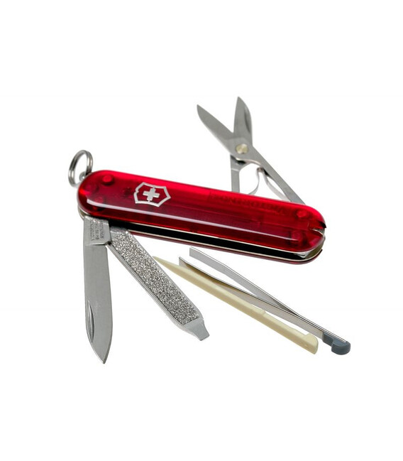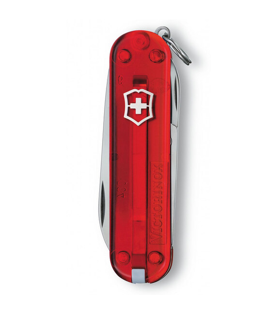 Маленький складной нож-брелок CLASSIC SD 58 мм / 2 слоя / 7 функций / красные полупрозрачные накладки / ножницы Victorinox 0.6223.T Швейцария