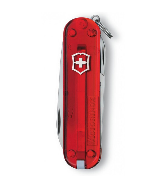 Компактный швейцарский нож-брелок CLASSIC 58мм / 2 слоя / 7 функций / красные полупрозрачные накладки / ножницы (блистер) Victorinox 0.6223.TB1 Швейцария