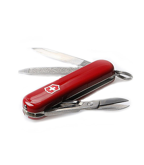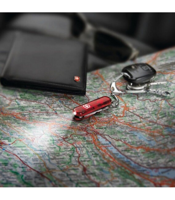 Маленький складной нож-брелок SWISS LITE 58 мм / 2 слоя / 7 функций / красные накладки / с фонариком Victorinox 0.6228 Швейцария