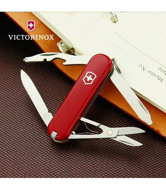 Маленький складной нож-брелок RAMBLER 58 мм / 2 слоя / 10 функций / красные накладки / с ножницами и отверткой Victorinox 0.6363 Швейцария