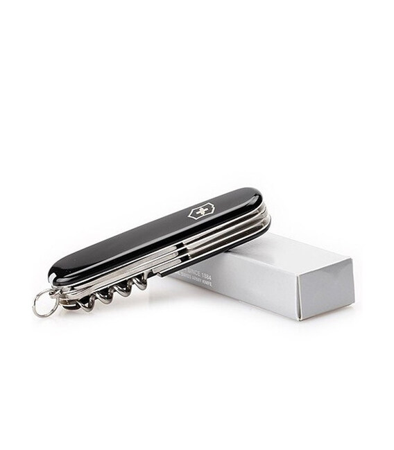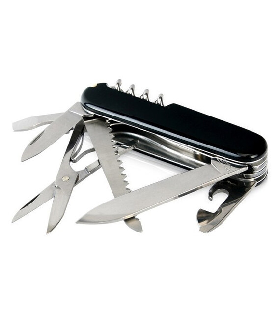 Victorinox HUNTSMAN - средний карманный нож 91 мм швейцарского производства с 15 функциями и черными глянцевыми накладками. Если вы являетесь страстным поклонником отдыха на свежем воздухе и туристических походов, тогда вам точно понадобится Huntsman в кармане.Многофункциональный дизайн, включающий суперострую пилу по дереву, ножницы и два клинка разного размера. С таким арсеналом вы готовы к любым режущим процессам. Две открывалки (для бутылок и консервных банок). Статус мультиинструмента подтверждают также две плоские отвертки (3 и 6 мм) на кончиках открывалок, паз для зачистки проводов; штопор, универсальный крючок и шило-дырокол. В торцах накладок – легко извлекаемые пинцет и зубочистка, а также небольшое кольцо для подвешивания.Нержавеющая сталь от легендарных Викторинокс не нуждается в представлении, ведь она является эталоном качества с 1884 года. Инструменты устойчивы к коррозии и деформации, отлично сохраняют остроту режущих кромок.• 15 функций• 4-рядное размещение инструментов• Размер рукояти (длина х толщина): 91 х 21 мм• Черные накладки: глянцевый органический пластик (целлидор)• Брендированная серебристая коробочка с сертификатом подлинности• Номер модели: 1.3713.3• Серия: Huntsman• Бренд: Victorinox AG, Швейцария• Официальная гарантия на качество материалов и сборки Купить швейцарский складной нож Викторинокс Huntsman 1.3713.3 вы всегда можете на нашем сайте. К тому же мы поможем подобрать оригинальный чехол именно для вашей модели ножа. Гарантируем подлинное качество и быструю доставку в ваш город.