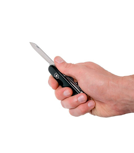 Victorinox HUNTSMAN (в блистере) - швейцарский карманный нож 91 мм (средний размер) с 15 функциями и черными накладками с логотипом компании. Идеально подходит для пиления дерева или резки канатов во время восхождений, туристических походов и кемпингов. Благодаря двум острым клинкам, пиле, ножницам и открывалкам справится с самыми разными полевыми задачами.Коллекция: Huntsman Номер модели 1.3713.3B 1 Черные накладки из глянцевого пластика (целлидор)Все инструменты и внутренняя часть конструкции из высококачественной нержавеющей стали Длина - 91 мм Толщина - 21 мм Вес - 97 г15 функций.Поставляется в оригинальном блистере.Бренд: Victorinox (Викторинокс)Страна производства: Швейцария Высокое качество материалов и сборки делает карманный нож Викторинокс долговечным, точным и невероятно производительным. Режущие кромки долго остаются максимально острыми. Фирменная нержавеющая сталь обладает высокими показателями устойчивости к коррозии и деформации.1. большой клинок2. маленький клинок3. пила по дереву4. ножницы5. открывалка6. - отвертка плоская 6 мм7. - приспособление для снятия изоляции с проводов8. консервный нож9. - отвертка плоская 3 мм10. штопор11. шило/дырокол12. универсальный крючок13. пинцет14. зубочистка15. кольцо для крепления На нож Victorinox Huntsman 1.3713.3B1, как и на любой складной нож Викторинокс, распространяется пожизненная гарантия на качество материалов и заводское производство. Быстрая доставка - 100% Оригинальные ножи Victorinox в интернет-магазине chemodanoff.com.ua - широкая география доставки по всей Украине.