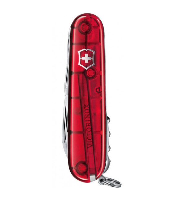 Victorinox HUNTSMAN - швейцарский карманный нож 91 мм (средний размер) с 15 функциями и красными транспарентными накладками. Идеально подходит для пиления дерева или резки канатов во время восхождений, туристических походов и кемпингов. Благодаря двум острым клинкам, пиле, ножницам и открывалкам справится с самыми разными полевыми задачами.Коллекция: Huntsman Номер модели 1.3713.T Красные полупрозрачные накладки из ударопрочного пластика Все инструменты и внутренняя часть конструкции из высококачественной нержавеющей стали Длина - 91 мм Толщина - 21 мм Вес - 97 г15 функций.Поставляется в оригинальной коробочке с сертификатом-вкладышем.Бренд: Victorinox (Викторинокс)Страна производства: Швейцария Высокое качество материалов и сборки делает карманный нож Викторинокс долговечным, точным и невероятно производительным. Режущие кромки долго остаются максимально острыми. Фирменная нержавеющая сталь обладает высокими показателями устойчивости к коррозии и деформации.1. большой клинок2. маленький клинок3. пила по дереву4. ножницы5. открывалка6. - отвертка плоская 6 мм7. - приспособление для снятия изоляции с проводов8. консервный нож9. - отвертка плоская 3 мм10. штопор11. шило/дырокол12. универсальный крючок13. пинцет14. зубочистка15. кольцо для крепления На нож Victorinox Huntsman 1.3713.T, как и на любой складной нож Викторинокс, распространяется пожизненная гарантия на качество материалов и заводское производство. Быстрая доставка - 100% Оригинальные ножи Victorinox в интернет-магазине chemodanoff.com.ua - широкая география доставки по всей Украине.