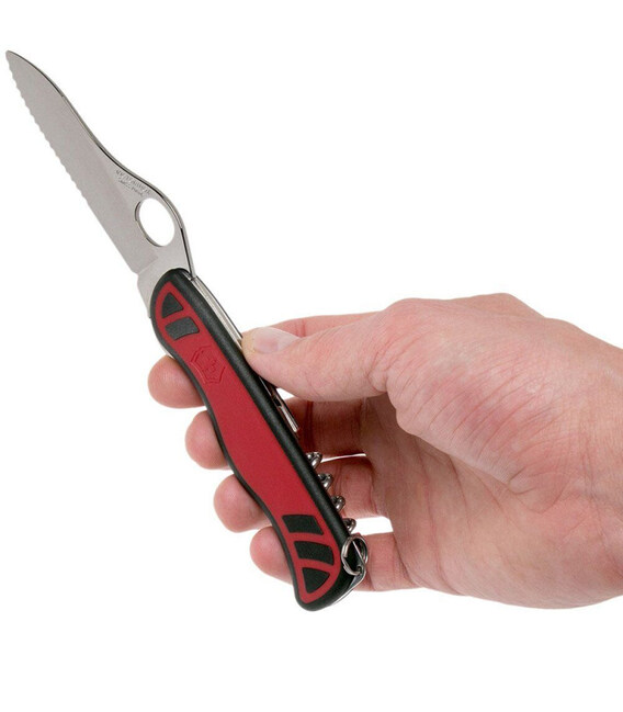 FORESTER Grip - большой швейцарский складной нож 111 мм с 10 функциям, среди которых большой одноручный клинок с серрейторным лезвием и пила по дереву. Сверхпрочный дизайн от Victorinox (Викторинокс) с красно-черными накладками для устойчивого и удобного захвата. Клинок и большая открывалка снабжены функцией блокировки типа Liner-lock (нужно нажать на металлические пластины при складывании инструмента). Нож вы с легкостью откроете одной рукой благодаря специальному отверстию, упершись в него большим пальцем. Обладает также набором плоских отверток и открывалок, чтобы уверенно себя чувствовать на любом пикнике или в туристическом походе.1. одноручный клинок с серрейторной на 2/3 заточкой и блокировкой Liner-lock2. пила по дереву3. открывалка4. – отвертка 5 мм, с фиксатором5. – паз для устранения изоляции6. консервный нож с7. – отвертка 3 мм8. дырокол 9. штопор10. кольцо для подвешивания Режущие кромки на протяжении долгого периода сохраняют идеальную заводскую заточку для предельно легкой и точной работы. Использование высококачественной нержавеющей стали и полиамида позволило создать максимально производительный складной нож, для которого нет непреодолимых трудностей.Коллекция: Forester Серийный номер: 0.8361.MWC Бренд-производитель: Victorinox AG, Швейцария Большой размер (длина х толщина): 111 х 18,5 мм10 функций Высококлассная нержавеющая сталь Красные накладки из полиамида с черными прорезиненными вставками Официальная гарантия на качество материалов и сборку Упаковка: серебристая картонная коробка Аналогичный нож доступен также с гладким клинком (номер модели 0.8361.MC).Купить складной нож Victorinox (Викторинокс) Forester One Hand 0.8361.MWC на сайте chemodanoff.com.ua – 100% оригинал, сертифицированный гарантийный сервис, выгодная цена и быстрая доставка по Украине. Интернет-магазин Атрибут - оригинальная брендовая продукция во всего мира.