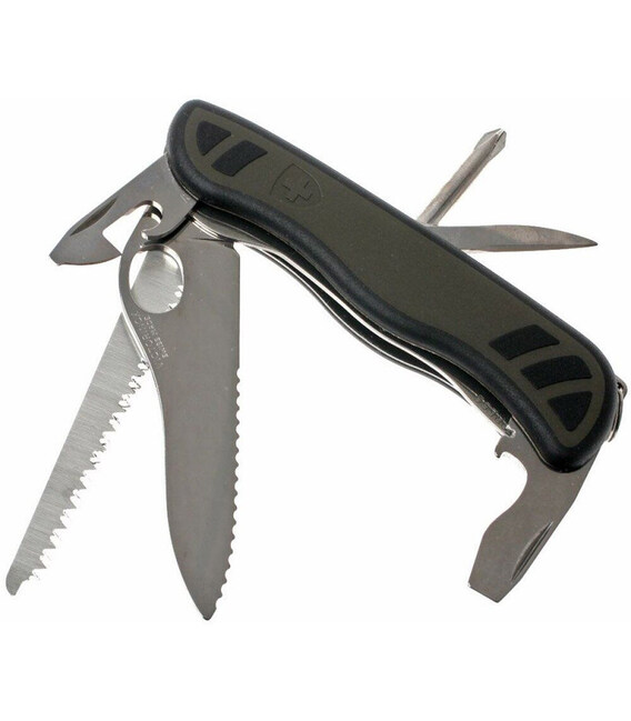 Большой армейский нож SWISS SOLDIER’S KNIFE 08 с фиксатором лезвия Liner Lock / 111 мм / 3 слоя / 10 функций / одноручный серрейторный клинок / двухцветные накладки цвета хаки / крестовая отвертка / пила по дереву Victorinox 0.8461.MWCH Швейцария
