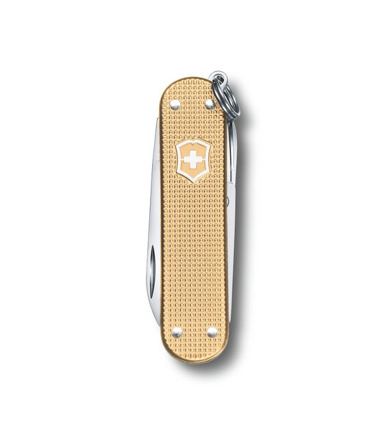 Маленький складной нож-брелок CLASSIC ALOX 58мм / 2 слоя / 5 функций / золотистые рифленые накладки из алюминия (Lim.Ed. 2019)