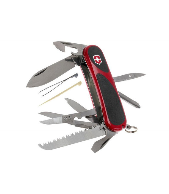 Швейцарский многофункциональный нож EVOLUTION GRIP 18 из коллекции Delemont с суперострой пилой по дереву и ножницами. Легендарный двухцветный дизайн с ярко-красными накладками и черными прорезиненными вставками. Производительная модель среднего размера 85 мм с 15 функциями - идеальный инструмент для повседневных приключений от Victorinox (Викторинокс).Складной карманный нож EvoGrip 18 содержит невероятно острый клинок с фирменной гравировкой, подтверждающей подлинность ножа. Удобные в использовании ножницы с микросеррейторной заточкой. Две открывалки (для бутылок и консервов), совмещенные с двумя плоскими отвертками (3 и 5 мм) и пазом для устранения старой изоляции. Для поддержания гигиены есть пилочка с очистителем для ногтей. С другой стороны - прочное шило/дырокол и крестовая отвертка 1/2. В накладках - стандартный для большинства складных ножей Викторинокс набор: пинцет и зубочистка. Стальное кольцо позволяет прикрепить к ножу темляк, а также подвесить нож к рюкзаку или поясу.серия: EVOLUTION серийный номер модели: 2.4913.C производитель: Victorinox AG, Швейцария15 функций4-рядное расположение инструментовразмер в сложенном виде (длина х толщина): 85 х 23 ммэргономичные красные накладки с нескользящими черными вставкамифирменная коробка с сертификатом подлинностигарантированное качество от производителя на материалы и сборку Все инструменты выполнены из фирменной нержавеющей стали, которая отвечает за долговечность и безукоризненное выполнение всех задач.Купить оригинальный швейцарский нож Victorinox EVOGRIP 2.4913.C в интернет-магазине chemodanoff.com.ua – это 100% подлинность товара, сертифицированное гарантийное обслуживание и быстрая доставка по Украине.