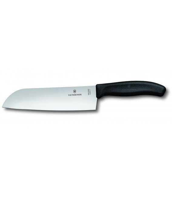 Victorinox SWISS CLASSIC Santoku [6.8503.17B] - популярный кухонный нож-сантоку.Длина лезвия 17 см - гладкая заточка. Дизайн с черной ручкой.Нож-сантоку, или же японский клинок, отлично подходит для ежедневной работы на кухне и в умелых руках становится настоящим универсалом. Прекрасно справляется с большинством кулинарных процессов. Невероятно острый и долговечный помощник.Swiss Classic (Свисс Классик) - это популярная серия кухонного инвентаря с самым большим выбором цветных рукоятей, вариантов длины и заточки лезвия. Кухонные ножи Victorinox (Викторинокс) - это высокое качество изготовления и безупречная производительность. Эргономичная ручка со стабильным хватом и профессиональная заводская заточка для легкой и продуктивной эксплуатации. Лезвие отлично режет и долго сохраняет остроту.- Лезвие 17 см.- Режущая кромка: гладкая (Plain).- Лезвие из нержавеющей стали высокого качества.- Нескользящая ручка из термоэластопласта (ТЭП).- Разрешено мыть в посудомоечной машине.- Упаковка - цветной блистер.Высококлассная нержавеющая сталь - это фирменная особенность швейцарской ножевой компании Victorinox, которая с 1884 года славится производством легендарных складных армейских ножей SAK. Спешите купить кухонный нож Victorinox 6.8503.17B. Интернет-магазин брендовых товаров А ttribute.ua - 100% оригинал от Викторинокс (Швейцария).