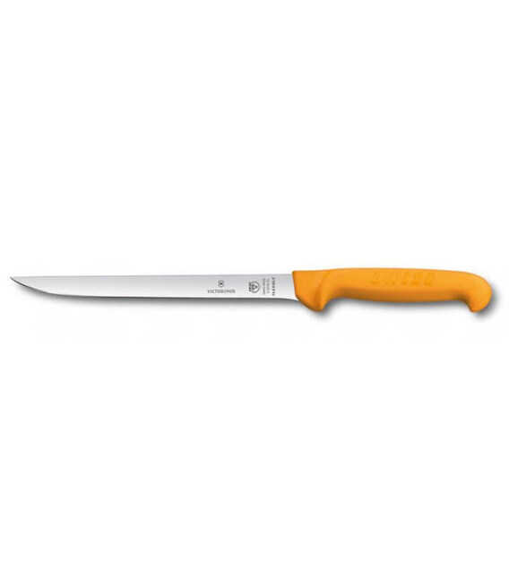 SWIBO Fish Filleting Flexible [5.8449.20] от Victorinox - филейный нож с гибким и узким лезвием длиной 20 см. Идеальный нож для филетирования рыбы. Точный и невероятно острый нож для быстрой и качественной работы. Минимум прилагаемых усилий - максимум результата.Модели из коллекции Swibo (Свибо) легко узнать по эргономичным рукоятям с выступом на лезвие для безопасного упора. Швейцарский кухонный инвентарь из профессиональной линейки от Victorinox, специализирующейся на ножах для мясников. Отлично подойдет для опытных мясников, работников мясоперерабатывающих цехов, скотобоен, мясных и рыбных отделов в супермаркетах.Насыщенно-желтый цвет рукояти с названием серии. Они выполнены из устойчивого к быстрому износу полимерного материала - полиамид.Кухонные ножи Victorinox (Викторинокс) - это высокое качество изготовления и безупречная производительность. Эргономичная ручка со стабильным хватом и профессиональная заводская заточка для легкой и продуктивной эксплуатации. Лезвие отлично режет и долго сохраняет остроту.- Для филетирования рыбы.- Гибкое лезвие 20 см.- Режущая кромка: гладкая (Plain).- Лезвие из нержавеющей стали высокого качества.- Нескользящая и термостойкая ручка из полиамида (PA).- Можно мыть в посудомоечной машине и стерилизовать.- Поставляется в защитном блистере.Высококлассная нержавеющая сталь - это фирменный почерк швейцарской ножевой компании Victorinox, которая прославилась производством легендарных складных армейских ножей SAK. Предлагаем купить кухонный нож Victorinox 5.8449.20 - только оригинальные ножи Викторинокс (Швейцария) на А ttribute.ua.
