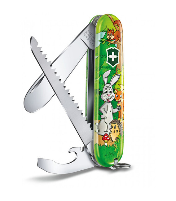 Детский складной нож MY FIRST VICTORINOX из коллекции Animal Edition с изображением милых лесных жителей (Set Rabbit). 9 инструментов, включающие уникальное безопасное лезвие и крутую пилу для работы по дереву. Идеальный вариант первого карманного ножа для детей поставляется в наборе с практичным нашейным ремешком с карабином и наполненной приключениями книжкой-раскраской.1. клинок с закругленным концом2. бутылочная открывалка с3. - консервный нож4. - отвертка 5 мм5. - приспособление для зачистки проводов6. пила по дереву7. колечко для подвеса к ремешку8. пластиковая зубочистка9. пинцет Нож выполнен в удобном размере 84 мм и обладает весом всего 45 граммов. Забавный набор с карманным ножом поможет детям исследовать окружающий мир и взаимодействовать с ним. Швейцарское качество, доступное в трех ярких дизайнах с рисунками животных.серия: My First Victorinox серийный номер модели: 0.2373.E2бренд-производитель: Victorinox AG, Швейцария9 функций2-рядное размещение инструментовразмер в собранном виде (длина х толщина): 84 х 14 мминструменты из высококлассной нержавеющей сталияркие глянцевые накладки из ударопрочного пластика (целлидор)гарантия качества на материалы и сборку Купить подарочный детский набор Victorinox (Викторинокс) MY FIRST Children Set Rabbit 0.2373.E2 на сайте chemodanoff.com.ua – 100% оригинал, сертифицированный гарантийный сервис и быстрая доставка в ваш город.