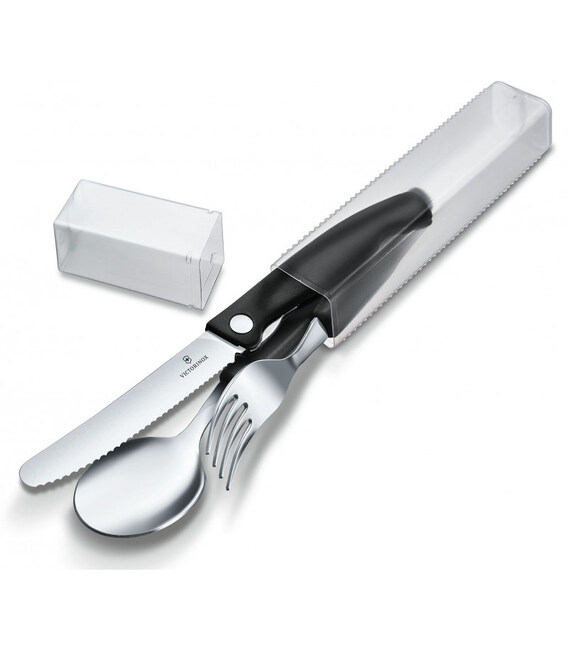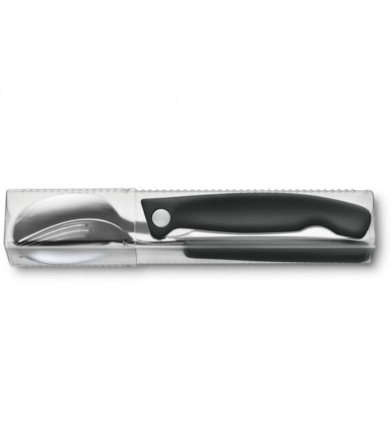 Набор столовых приборов SwissClassic Table Set 3 предмета с черными ручками (складной нож с серрейтором, вилка, ложка) Victorinox 6.7192.F3 Швейцария