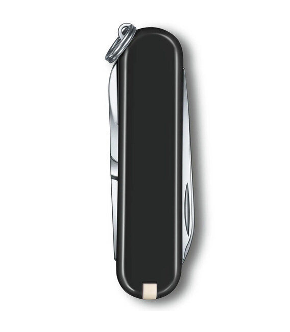 Victorinox CLASSIC SD Colors (Dark Illusion - черный) - маленький и легкий складной нож 58 мм с 7 функциями из яркой коллекции Colors 2021 года. Линейка Classic SD представлена моделями в формате небольшого брелока. Популярные однотонные дизайны швейцарского карманного ножа с набором полезных каждый день функций.Коллекция: Classic SD Colors Номер модели 0.6223.3G Черные глянцевые накладки из органического пластика (целлидор)Все инструменты и внутренняя часть конструкции из высококачественной нержавеющей стали Длина - 58 мм Толщина - 9 мм Вес - 21 г7 функций.Поставляется в подарочной коробке, созданной специально для коллекции Colors.Бренд: Victorinox (Викторинокс)Страна производства: Швейцария30 потрясающих цветов для Classic SD Colors, выполненные как с пластиковыми накладками, так и культовыми рифлеными накладками из анодированного алюминия. Ножи сочетают 7 удобных функций в стильных накладках, что делает их функциональными и привлекательными.1. маленький клинок2. ножницы3. пилочка для ногтей4. - отвертка плоская 2.5 мм5. зубочистка6. пинцет7. кольцо для подвешивания к брелоку или ключам На нож Victorinox Classic SD Colors 0.6223.3G, как и на любой складной нож Викторинокс, распространяется пожизненная гарантия на качество материалов и заводское производство. Быстрая доставка - Оригинальные ножи Victorinox - широкая география доставки по всей Украине.