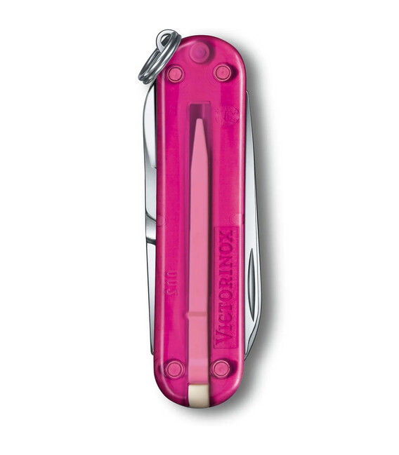 Маленький карманный нож-брелок CLASSIC SD Colors Cupcake Dream 58мм / 2 слоя / 7 функций / розовые полупрозрачные накладки / ножницы Victorinox 0.6223.T5G