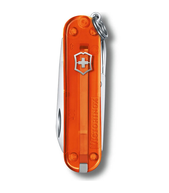 Маленький карманный нож-брелок CLASSIC SD Colors Fire Opal 58мм / 2 слоя / 7 функций / оранжевые полупрозрачные накладки / ножницы Victorinox 0.6223.T82G