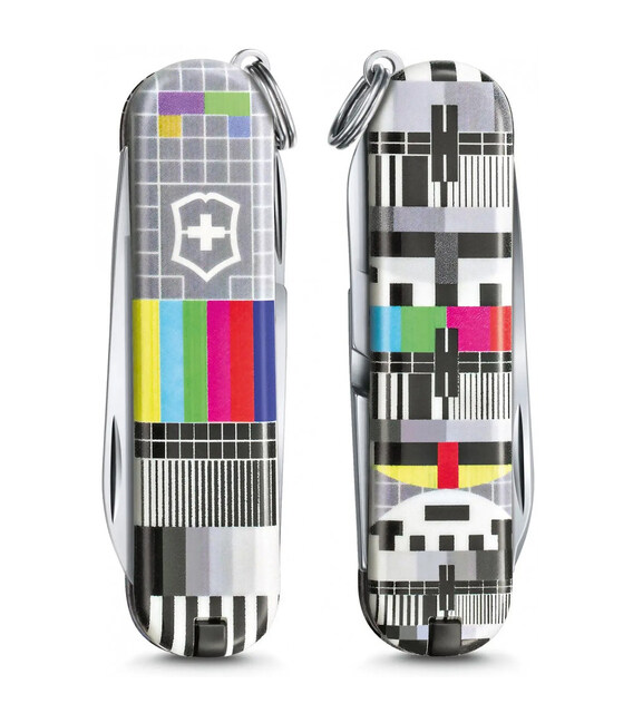 Лимитированный швейцарский нож-брелок CLASSIC LE "Retro TV" 58мм / 2 слоя / 7 функций / разноцветные накладки / чехол / ножницы Victorinox 0.6223.L2104 Швейцария